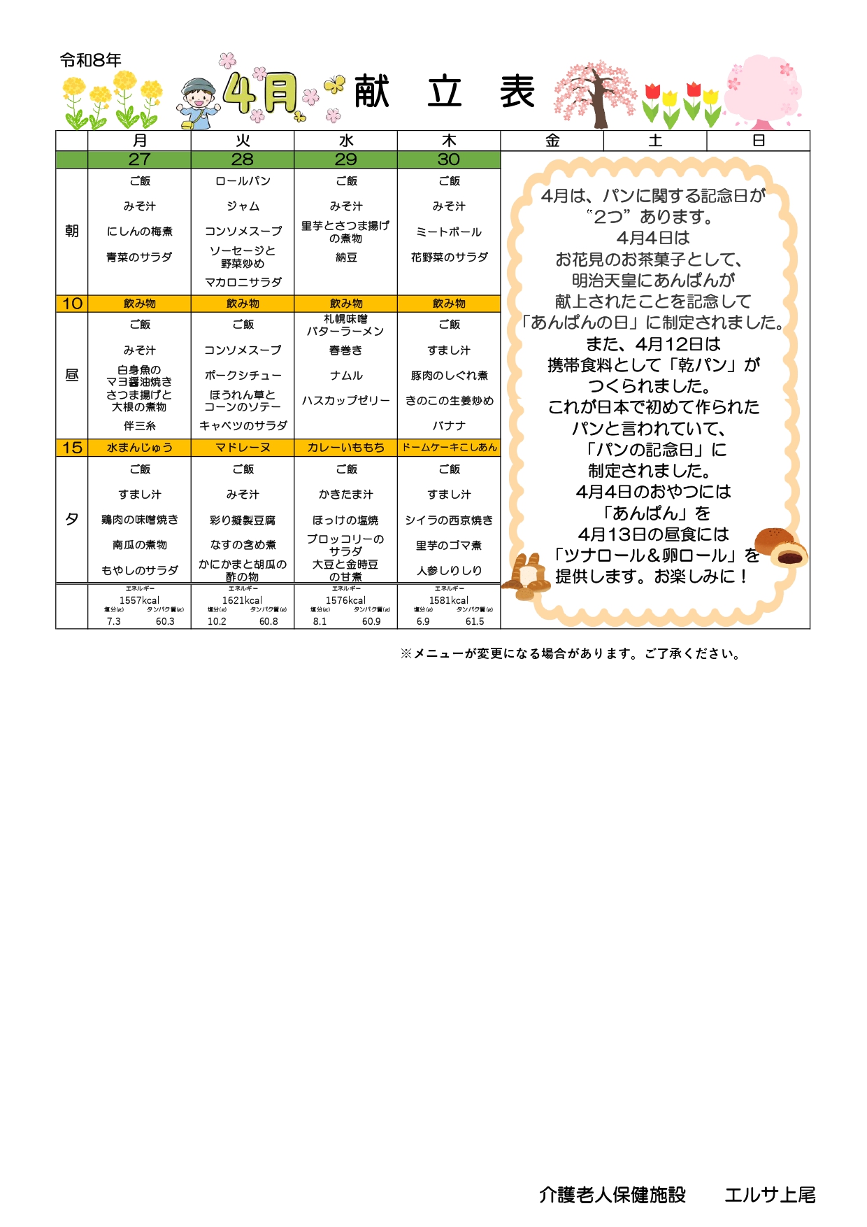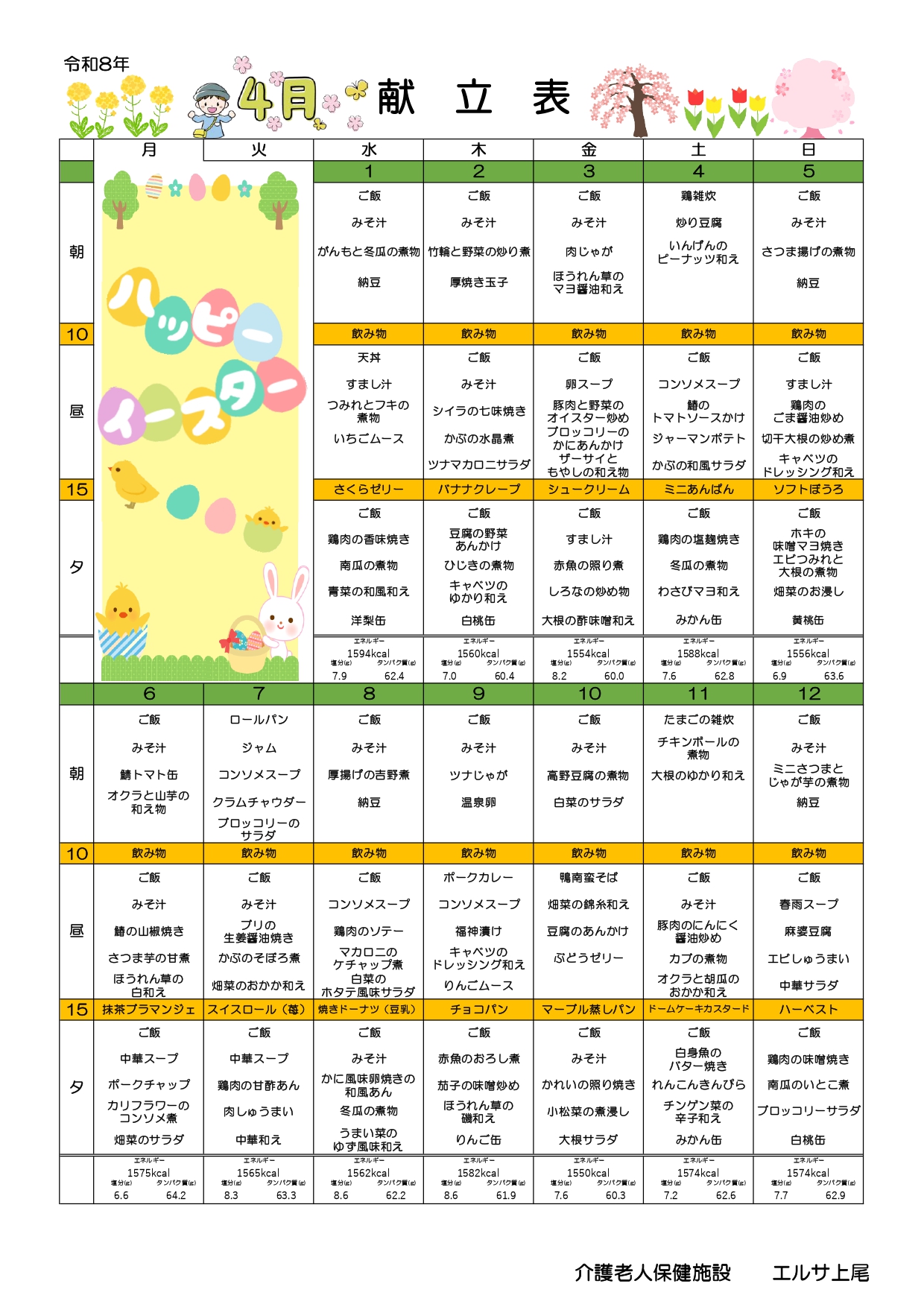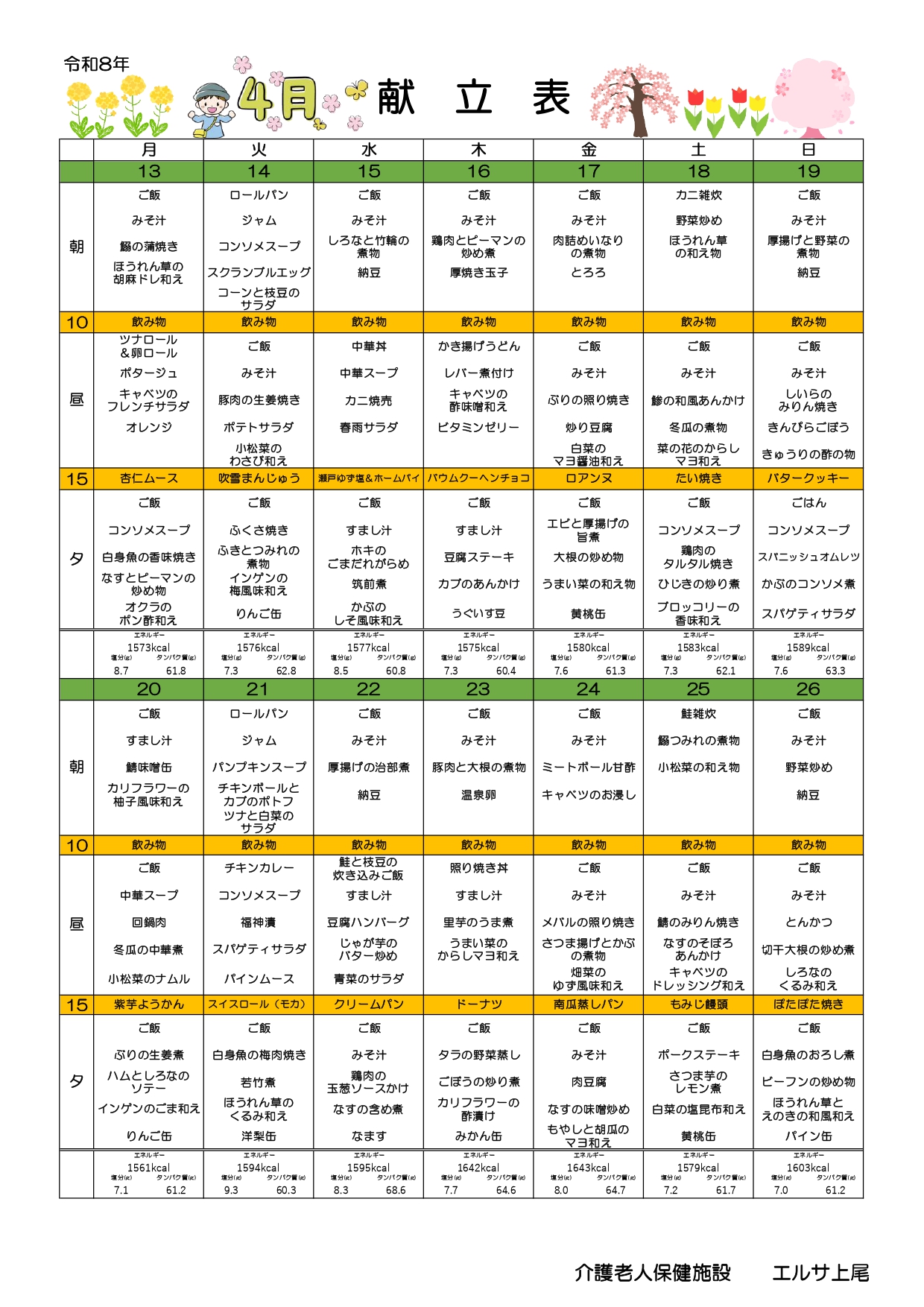 エルサ上尾 献立4月分