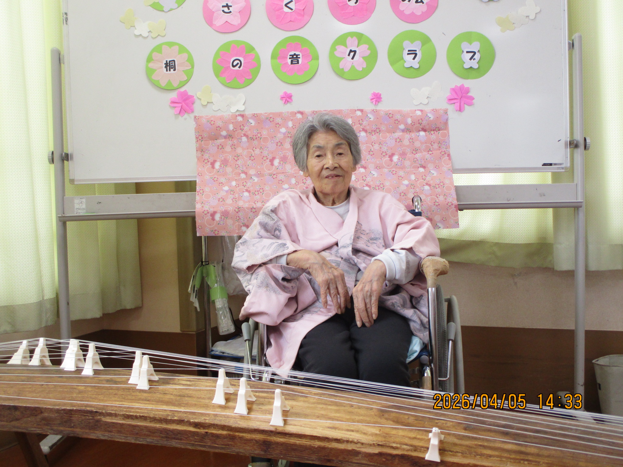 桐の音会も行いました。お琴に興味を惹かれる利用者様もいらっしゃいました。半被を着て喜ばれていました。