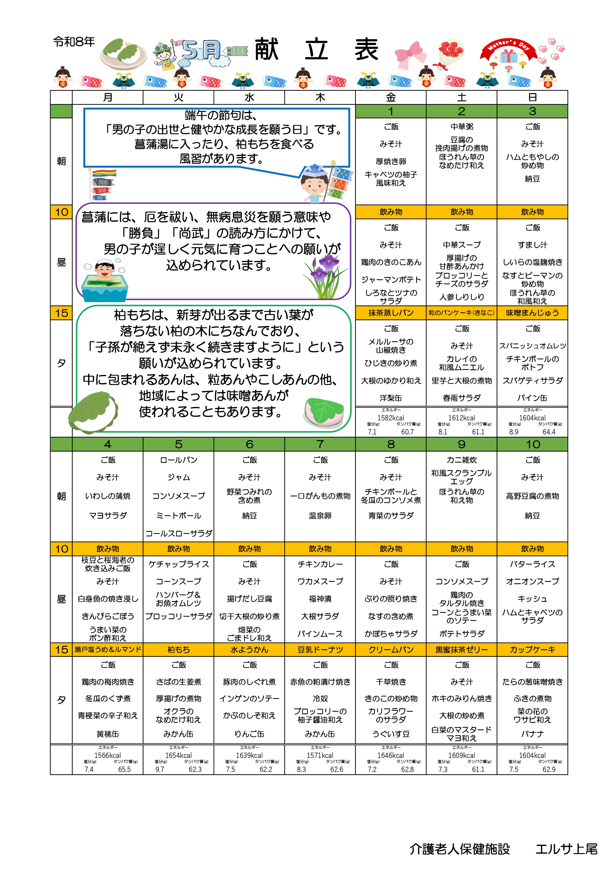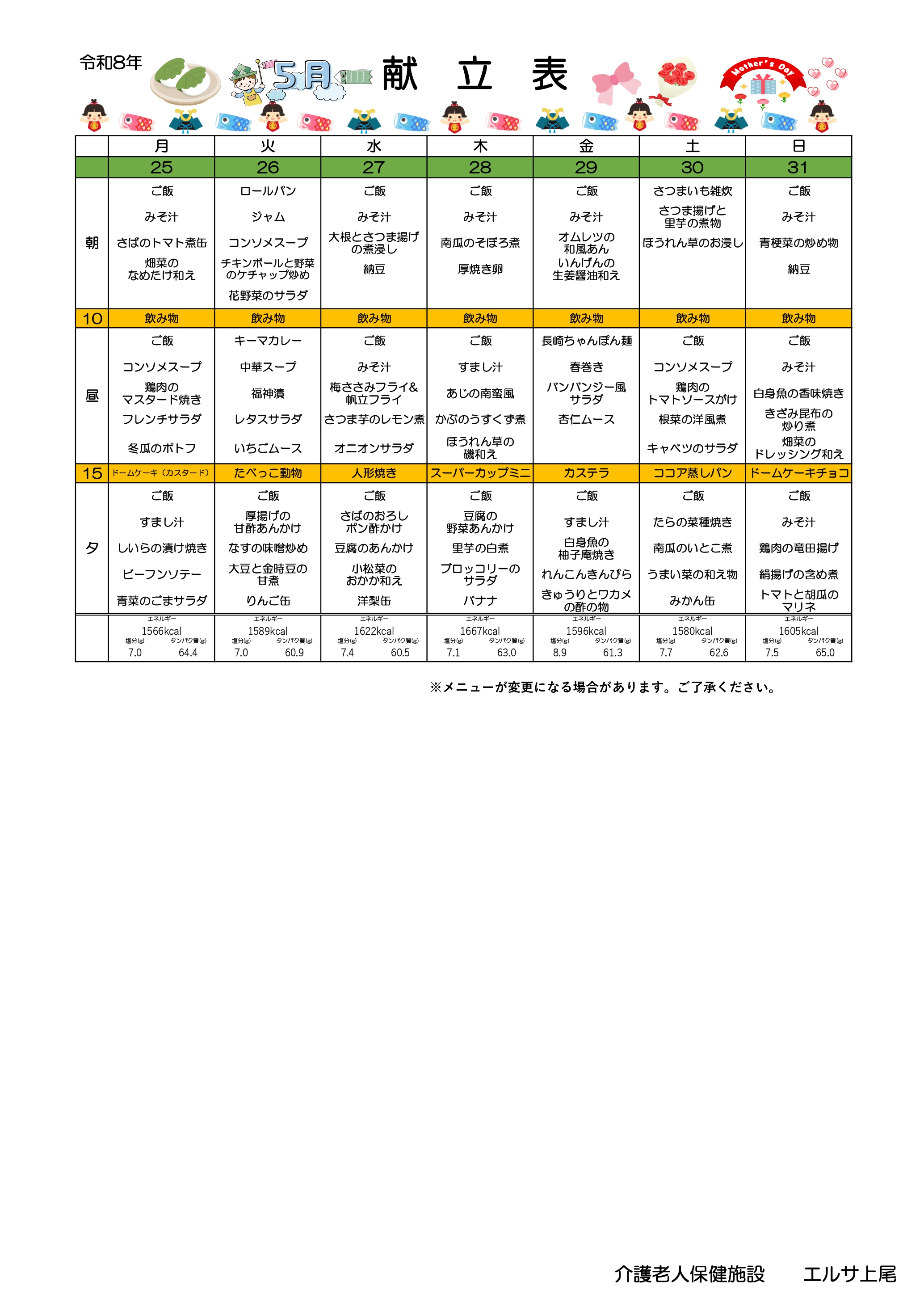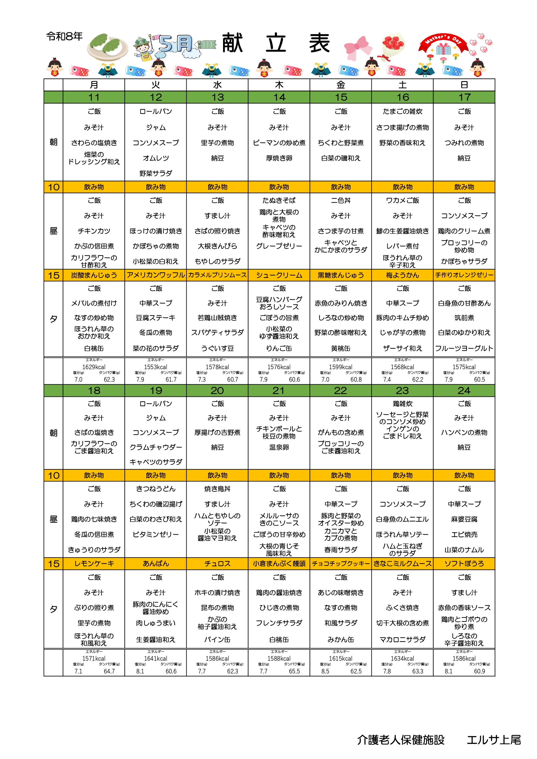 エルサ上尾献立 5月分