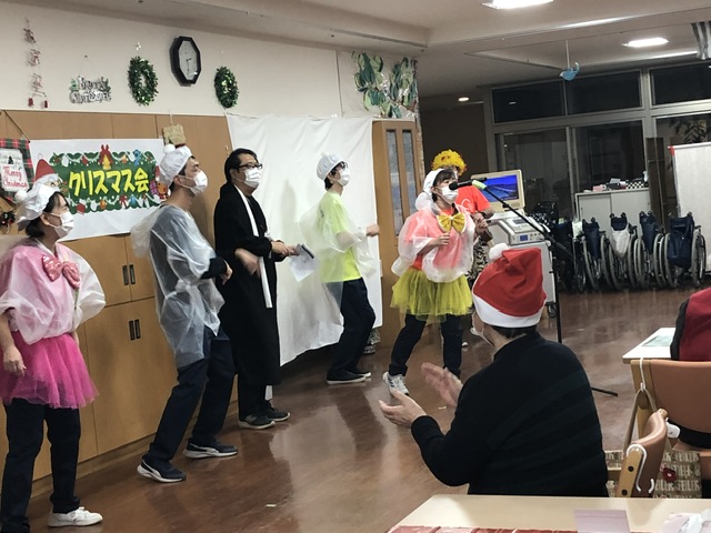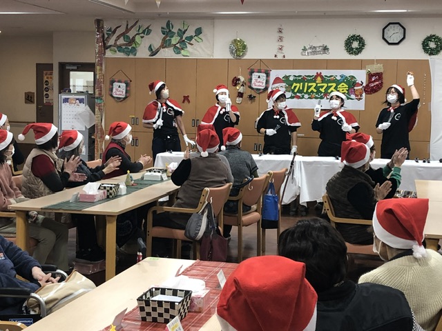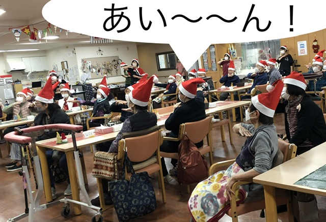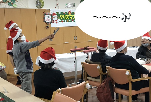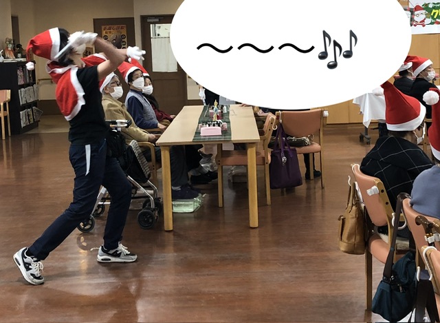定番の【きよしこの夜】と【ジングルベル】良い音色のハーモニーに合わせ、自然に利用者様の合唱が始まりました(感動でウルウル)