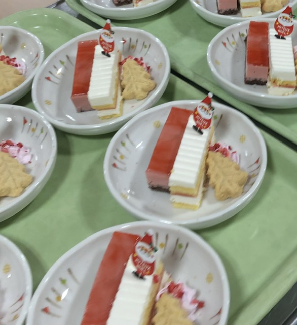 感動の後はおやつタイム!今年のケーキも担当さんと栄養科さんでこだわって考えました!